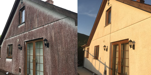 The procedure for cleaning and ongoing maintenance for roughcast rendered walls is very similar to that for cleaning silicone based scratch finish render. Appropriate chemical cleaning and low pressure, medium temperature Cleaning is very effective for Roughcast Render, along with biocide treatments. This is sometimes referred to as Softwashing.